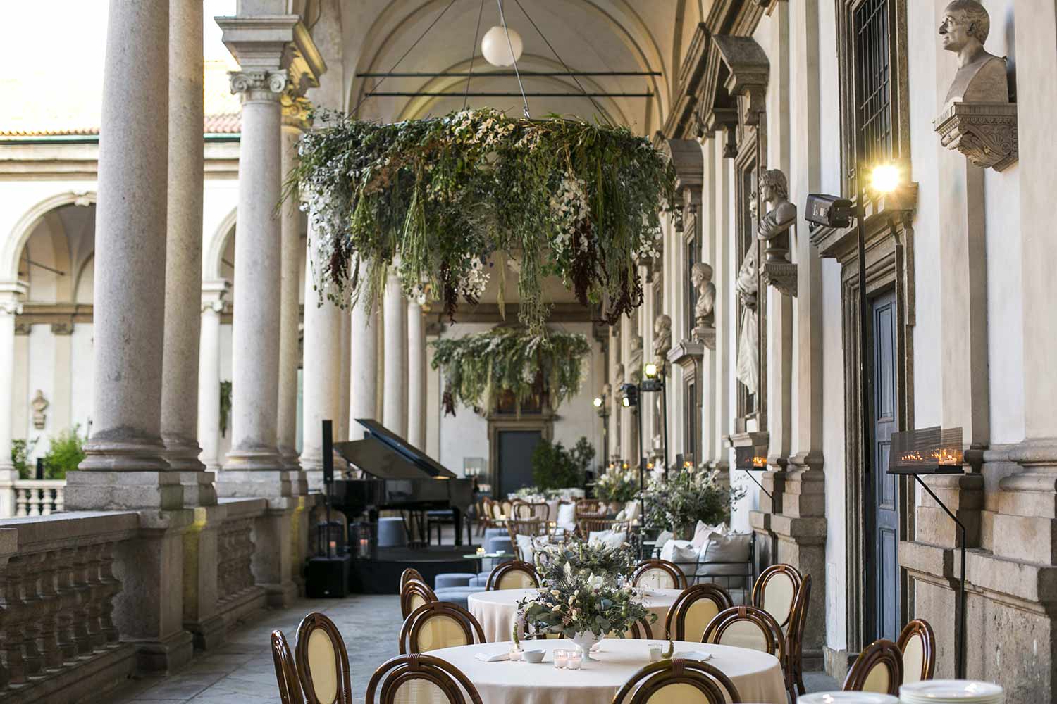 In occasione di Milano Unica, una nota casa di moda invita i suoi clienti più importanti ad una cena elegante che ha per cornice l’incanto senza tempo della Pinacoteca di Brera.